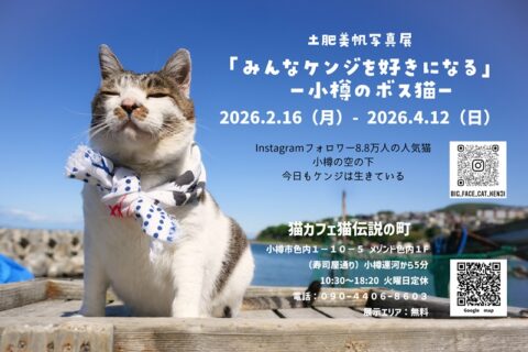 小樽の猫カフェ『猫伝説の町』の無料展示エリアで 土肥美帆さんの写真展「みんなケンジを好きになる ー小樽のボス猫ー 」 を開催します。展示期間限定作品とスポットを…2026年02月02日 -