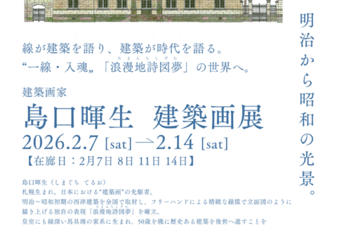 線が建築を語り、建築が時代を語る。“一線・入魂,「浪漫地詩図夢(ろまんちしずむ)」の世界へ。 全国各地の歴史的建造物を描く日本における「建築画」の先駆者。 小樽…2026年01月13日 -