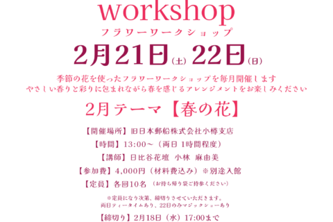 旧日本郵船株式会社小樽支店・フラワーワークショップ開催(2/21・22)