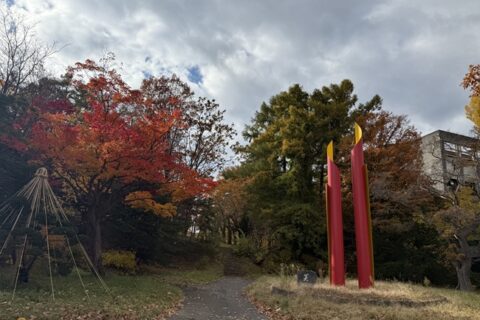 小樽公園の木々も色づき、葉っぱも大分落ち始め、落ち葉のジュータンが広がっていました。 晴れたり曇ったりのお天気で、すっきりしませんが、木々は緑に、茶色、黄色、赤…2025年11月05日 -