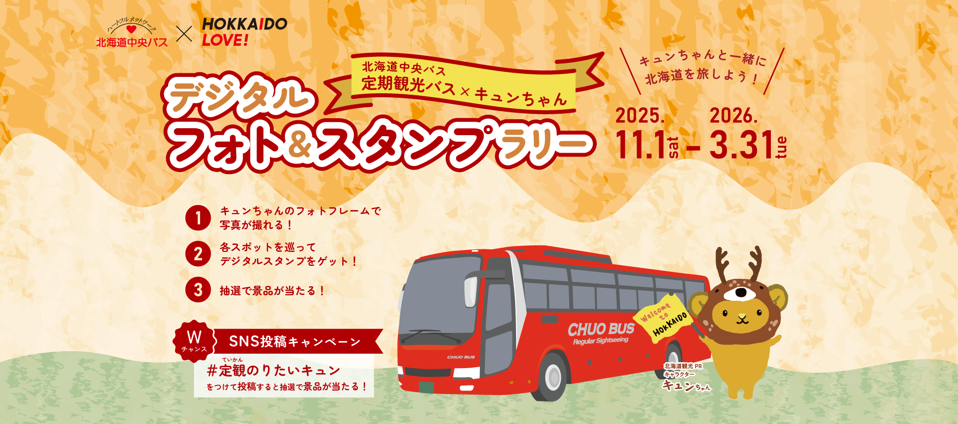 北海道中央バス定期観光バス×キュンちゃん デジタルフォト&スタンプラリー