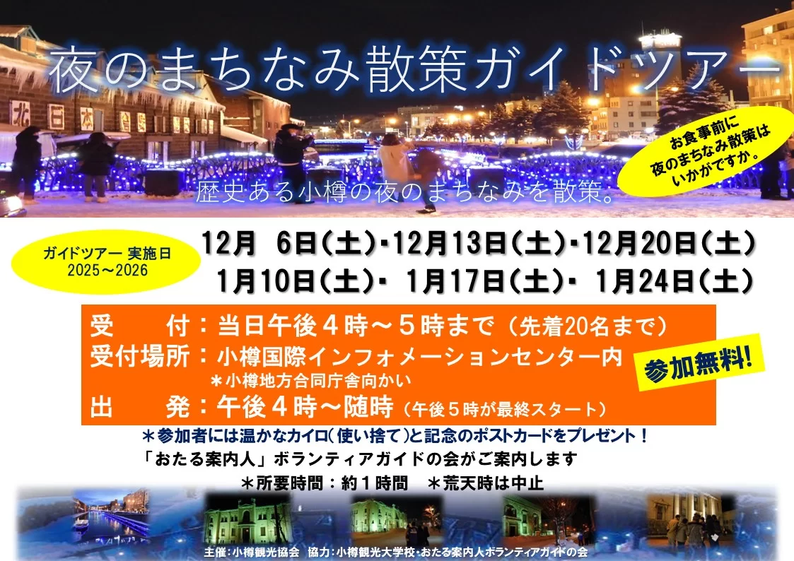 - 12月06日(土) ~ 01月24日 [2025] 冬の小樽『夜のまちなみ散策』ガイドツアー