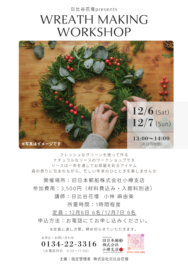 - 12月06日(土) ~ 12月07日 旧日本郵船㈱小樽支店 クリスマスリース ワークショップ